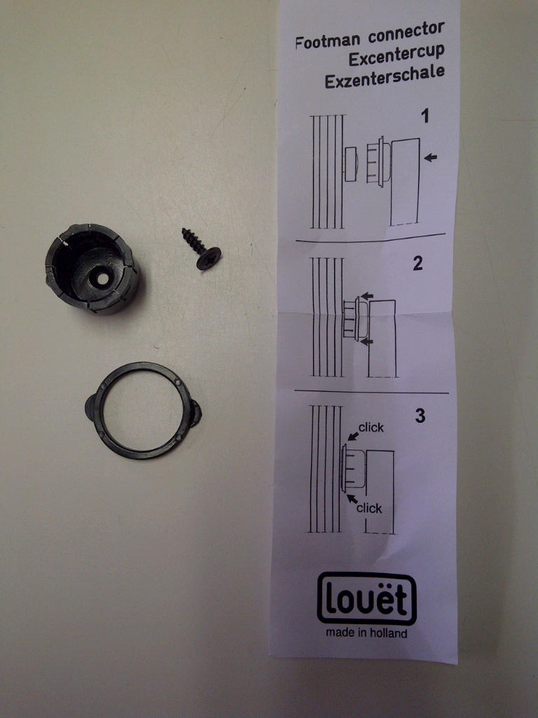 - Neem vervolgens de nieuwe excentercup (artikelnummer SR0108) en schroef deze op het trapstokje.